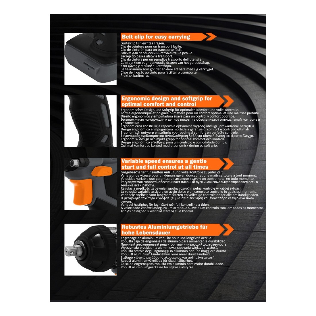- معدل طرقات يصل إلى 0-2700 طرقة/دقيقة لضمان أداء عالي الكفاءة.