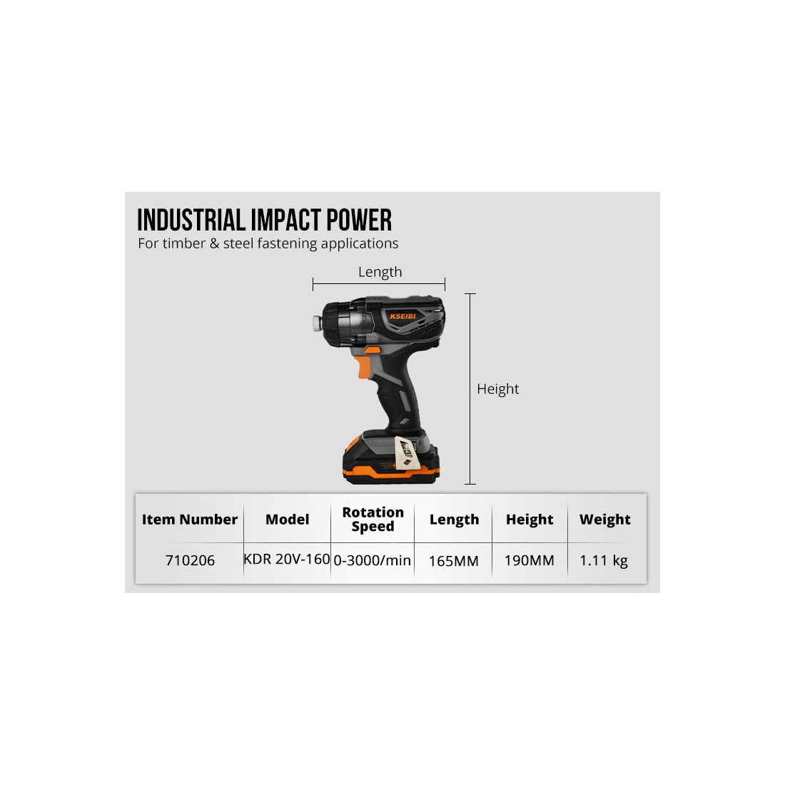 KSEIBI مفك صدمات لاسلكي 20 فولت KDR 20V-160 (1/4"، جسم فقط)