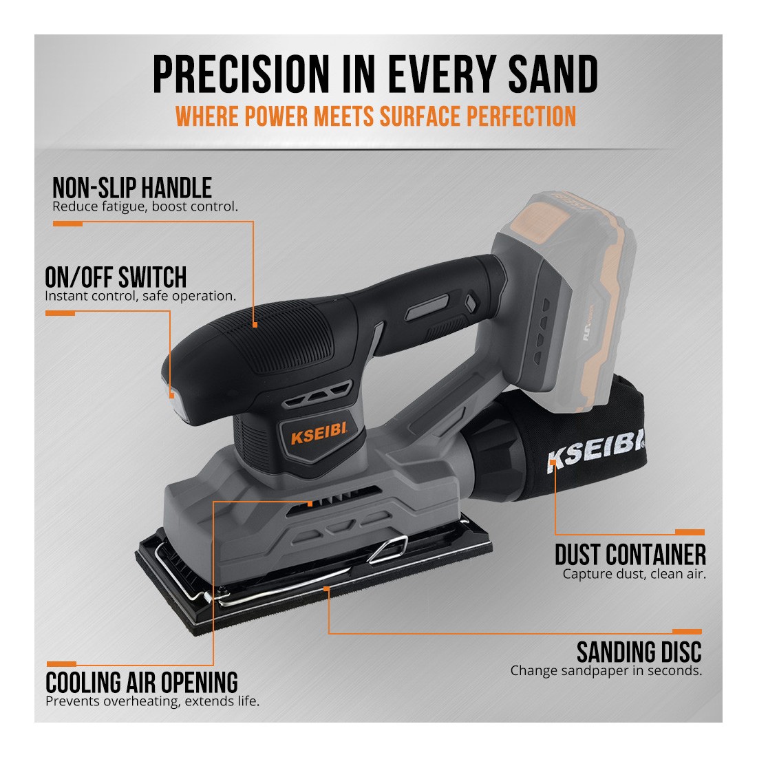 تتميز بمساحة صنفرة 90x187 ملم وأوراق صنفرة بمقاس 93x230 ملم، مما يوفر تغطية واسعة مع تحكم دقيق في التفاصيل. كونها وحدة منفردة (جسم فقط)، فهي متوافقة مع بطاريات وشواحن كسيبي 20 فولت، ما يمنحك مرونة في استخدام بطارياتك الحالية لتوفير التكاليف.