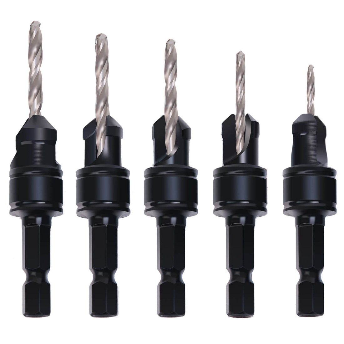 مجموعة **ريشة تخويش (كاونترسينك)** من كسيبي، المكونة من 5 قطع، مصنوعة من الفولاذ عالي السرعة لضمان تخويش دقيق ونظيف في كل مرة. هذه الأداة مصممة لتوفير تشطيب سلس على الأسطح المعدنية والخشبية، مما يجعلها مثالية للاستخدام في المشاريع التي تتطلب تثبيت البراغي بشكل متقن ودون نتوءات.