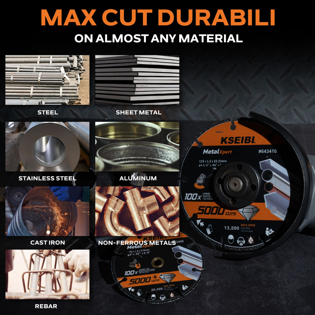 - مناسب لقطع مجموعة واسعة من المعادن مثل الفولاذ والحديد.
