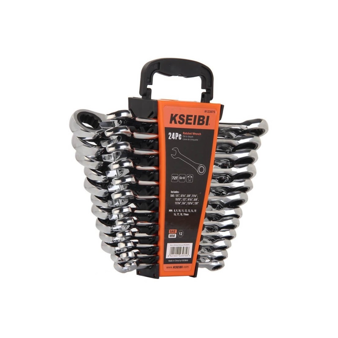 KSEIBI طقم مفاتيح شق وحلق طقطقة 24 قطعة (8–19 ملم / 1/4–7/8 بوصة)