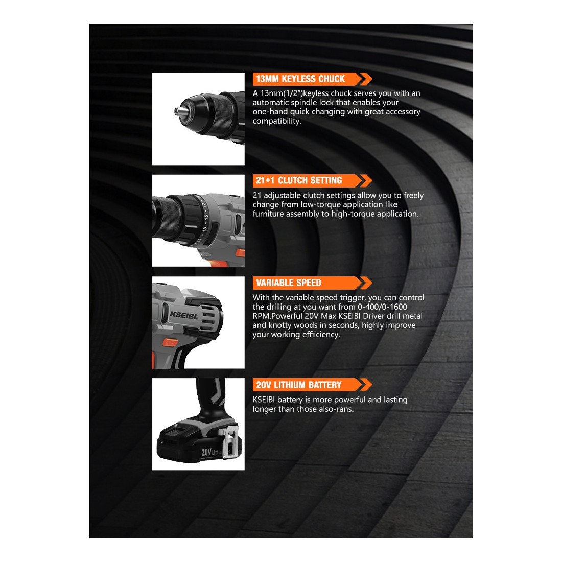 - mm metal single-sleeve keyless chuck for secure and easy bit changes.