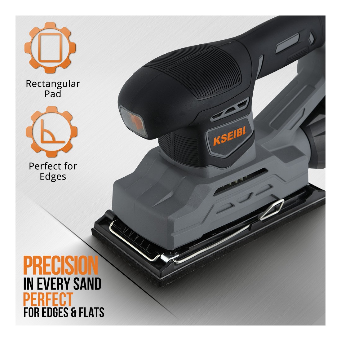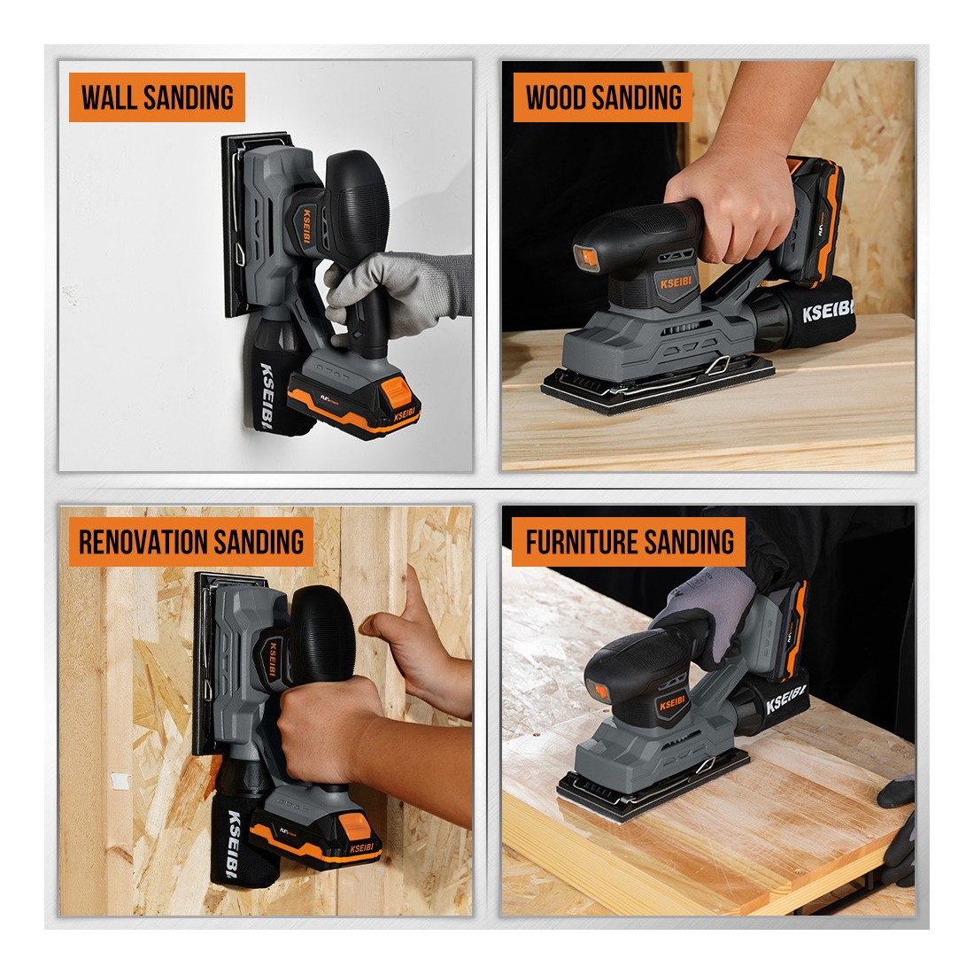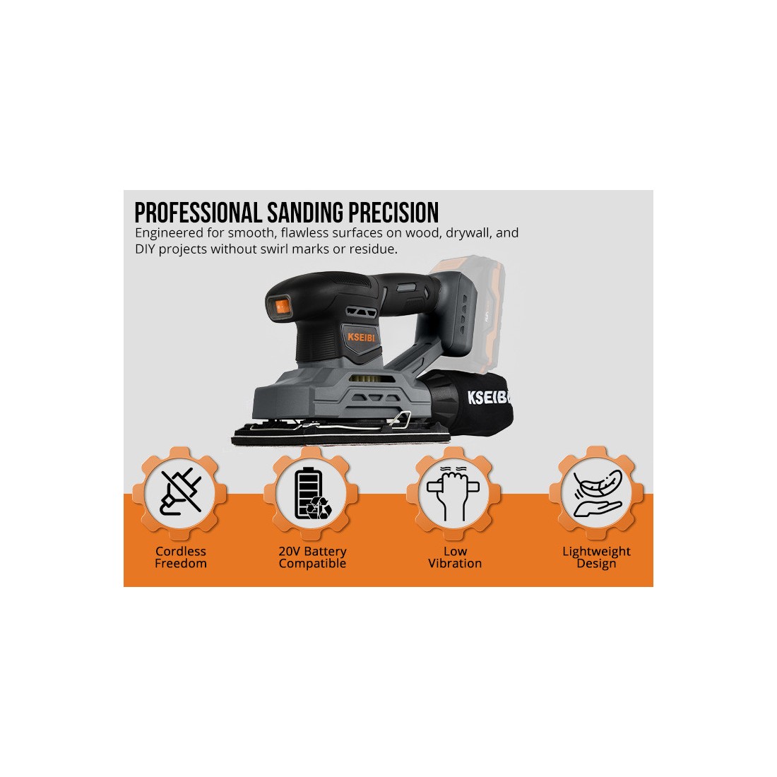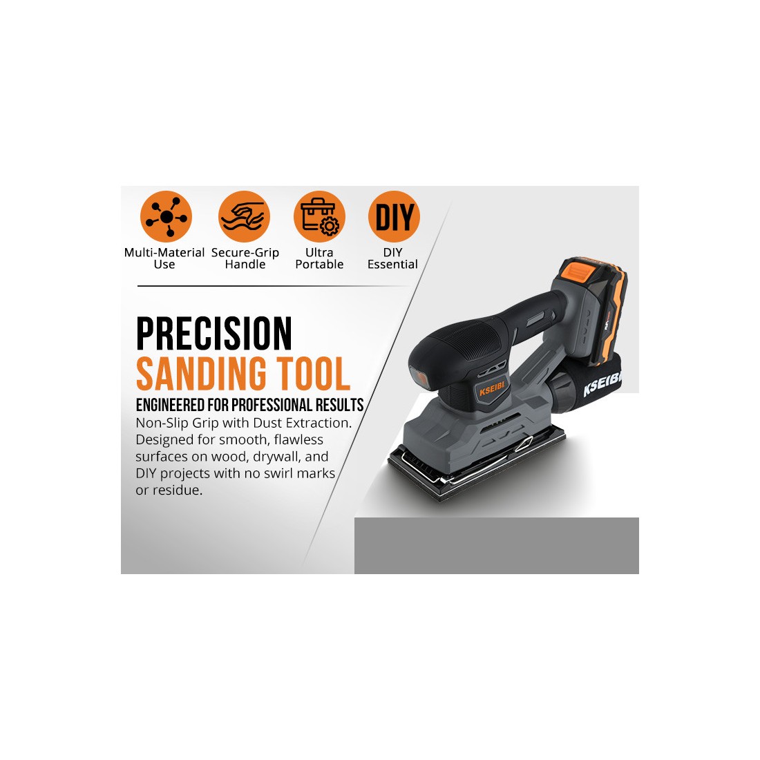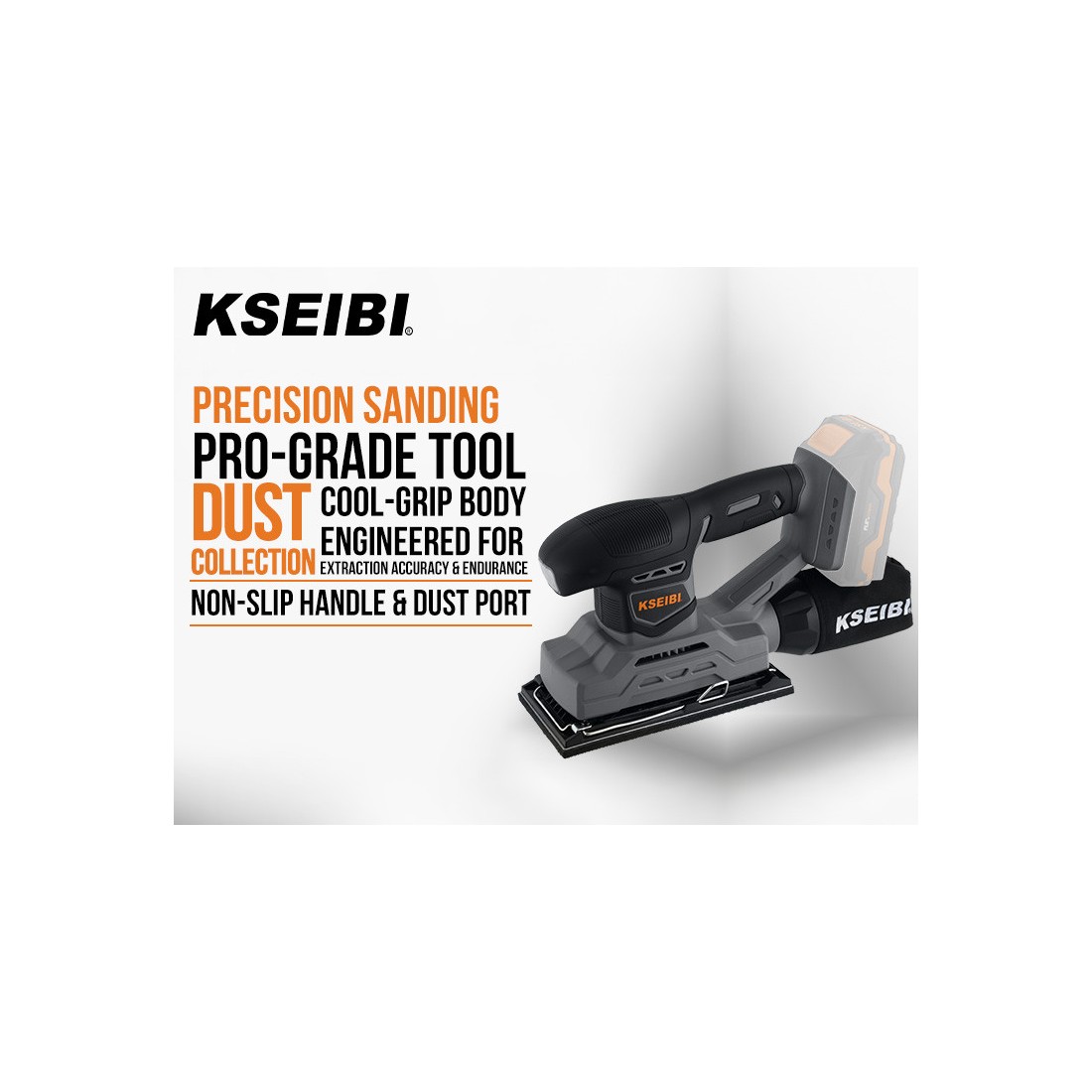 Perfect for carpenters, finishers, and other professionals, this sander excels in fine detailing, surface preparation, and repair work. Whether in workshops or on construction sites, the KSEIBI KSS 20V-230 delivers the durability and precision the brand is known for.