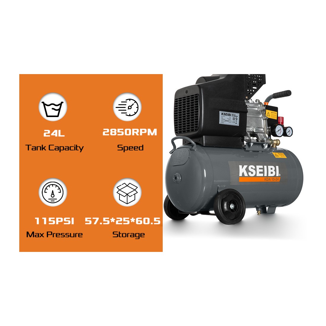 KSEIBI’s KDA 15-24 is a compact 2HP, 24‑liter air compressor built for dependable shop and site use. It delivers steady airflow for nailers and staplers, blow guns, tire inflation, light spraying, and general cleanup in small workshops, garages, and maintenance teams.
