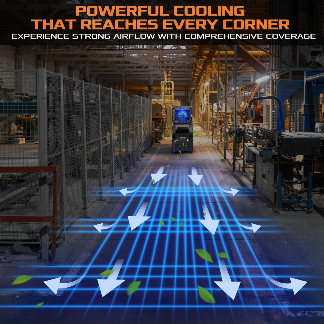 KSEIBI’s KAC 35-70M Air Cooler delivers fast, effective spot cooling for hot work areas without the cost or complexity of traditional AC. Using evaporative cooling, it pushes a strong stream of cooled air to lower perceived temperatures and improve comfort on the floor.