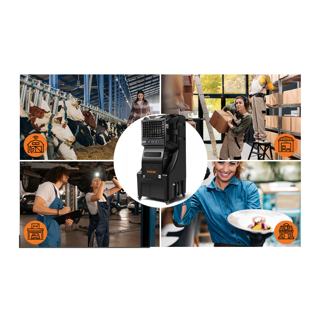Mounted on swivel casters, it rolls easily between stations and fits where temporary cooling is needed—fabrication shops, warehouses, maintenance bays, loading docks, rental fleets, and event spaces. For teams that value durability, precision, and reliability, this cooler aligns with KSEIBI’s reputation while keeping crews productive in the heat.