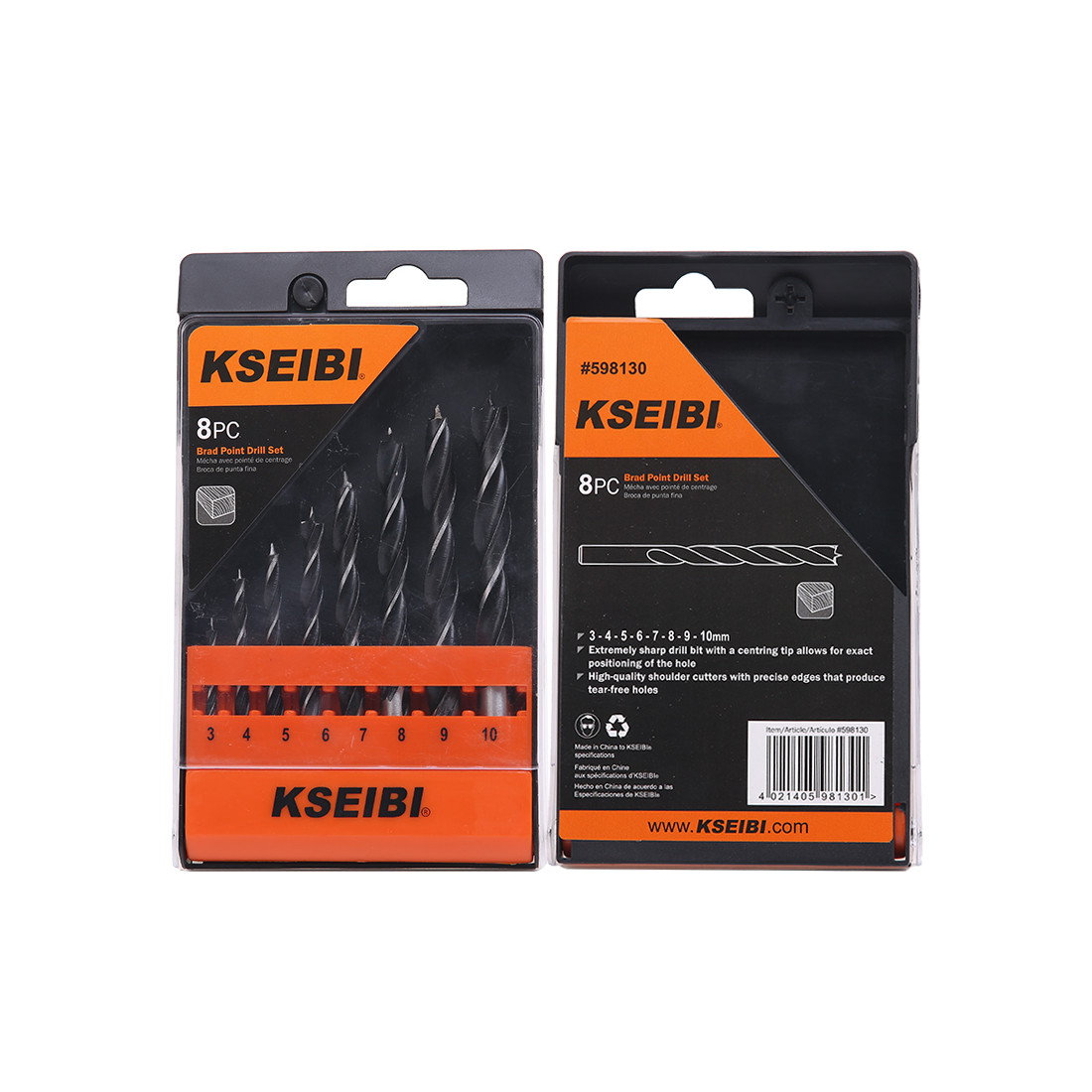 KSEIBI Brad Point Drill Bits Set, Plastic Case 8-Pc
