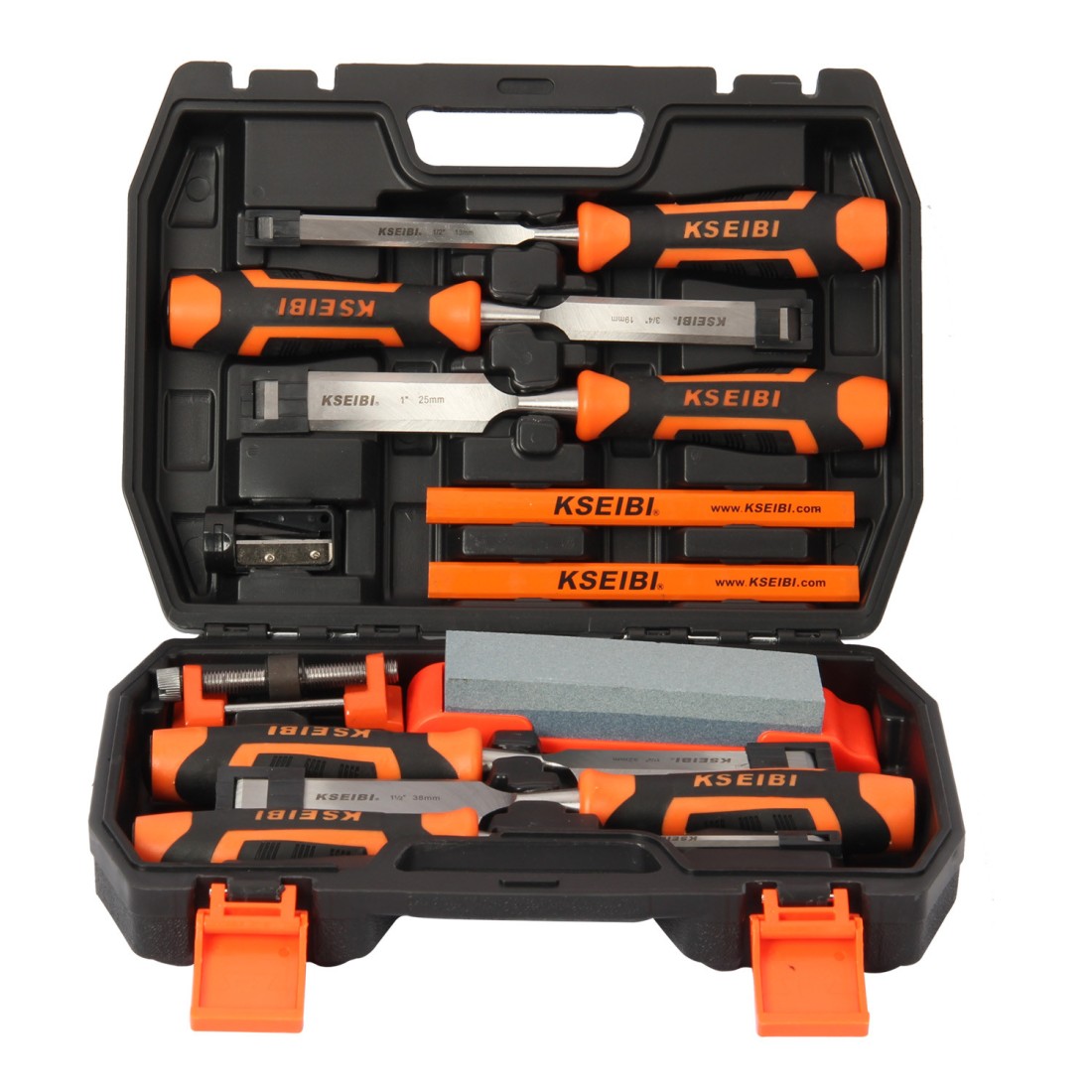 Packaged in a sturdy plastic case, the chisels are organized and protected for easy storage and transport, making them practical for both workshop and on-site use. Built to meet the demands of carpenters, furniture makers, and general woodworkers, the KSEIBI Wood Chisel Set ProGrip 12-Pc. is a reliable choice for achieving precise results in any woodworking application.