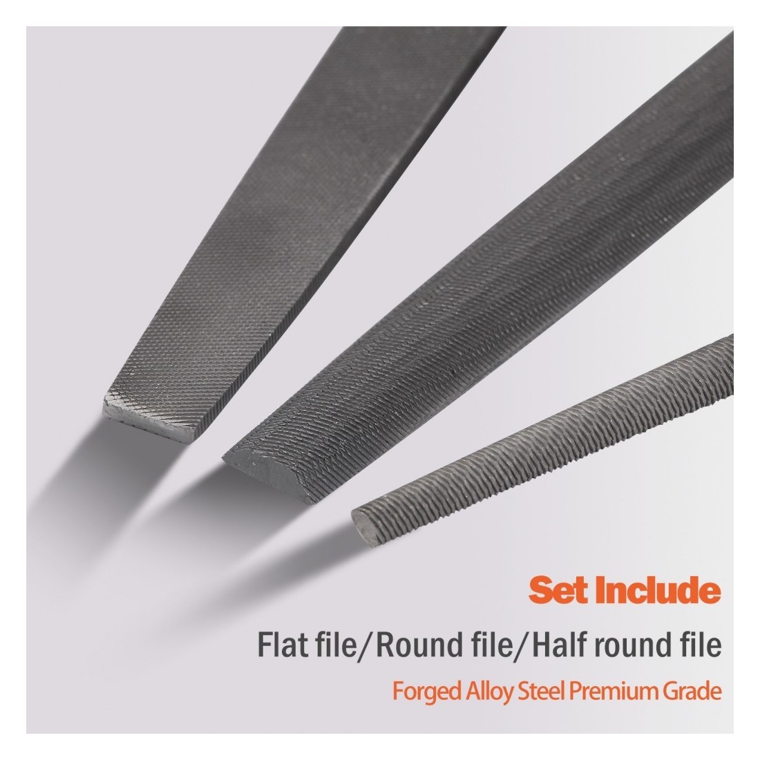 - Three distinct file shapes for versatile metal shaping and smoothing tasks.