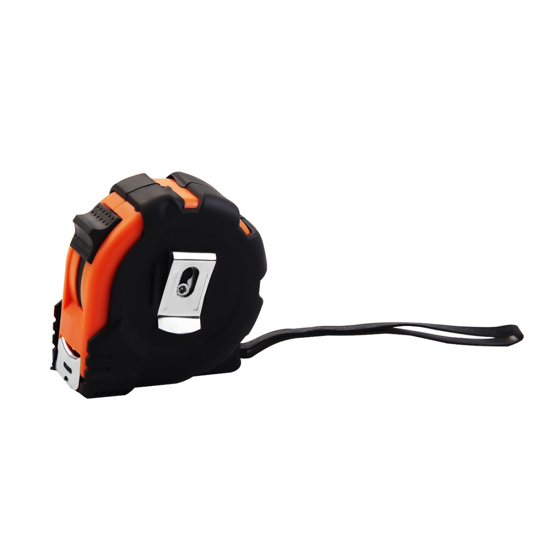 m measuring tape with a durable rubber shell for enhanced grip and impact resistance.