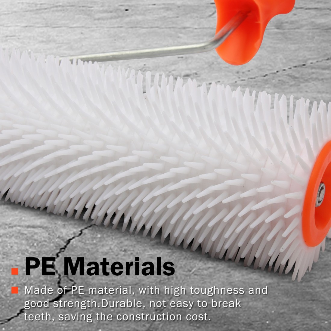 Equipped with a durable plastic handle, the roller is lightweight yet sturdy, offering a comfortable grip for extended use. The thoughtfully designed spikes provide consistent performance, making it a valuable tool for construction professionals, flooring specialists, and anyone involved in large-scale surface preparation.