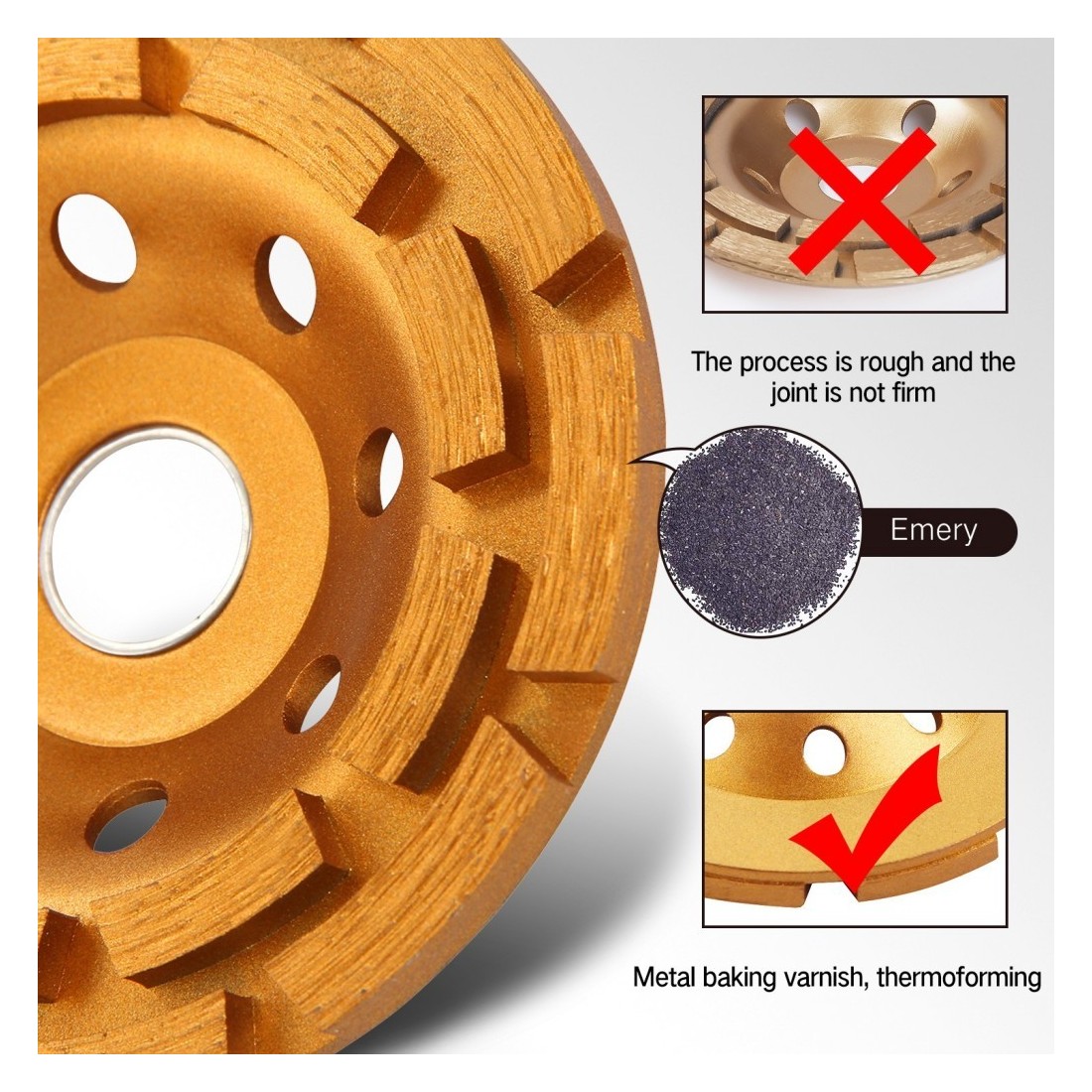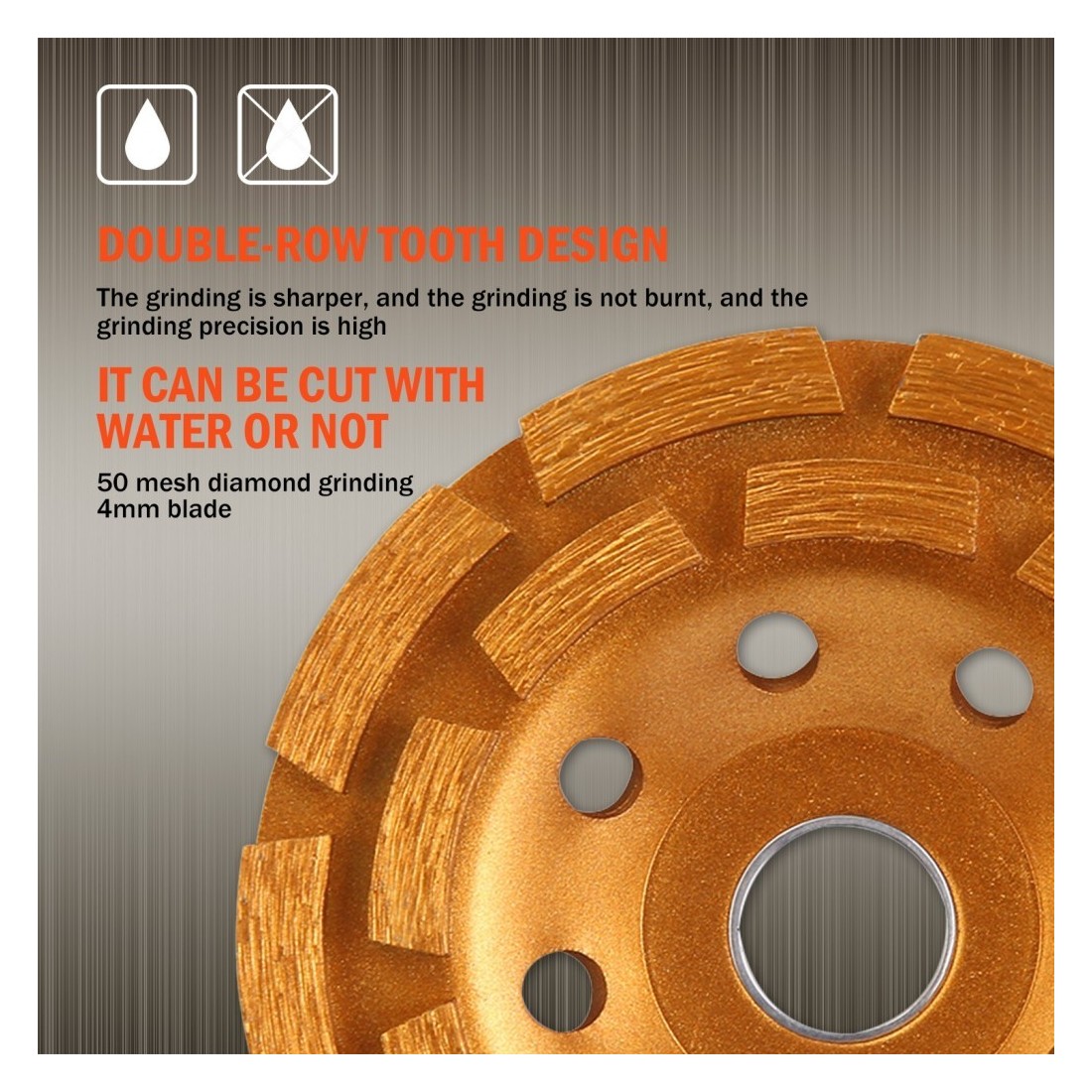 Built for durability, the wheel is crafted to withstand continuous use on tough surfaces, ensuring consistent performance over time. Its design minimizes vibration during operation, enhancing both user comfort and accuracy. The double-row configuration not only increases grinding efficiency but also extends the tool's lifespan, offering excellent value for professionals and contractors.