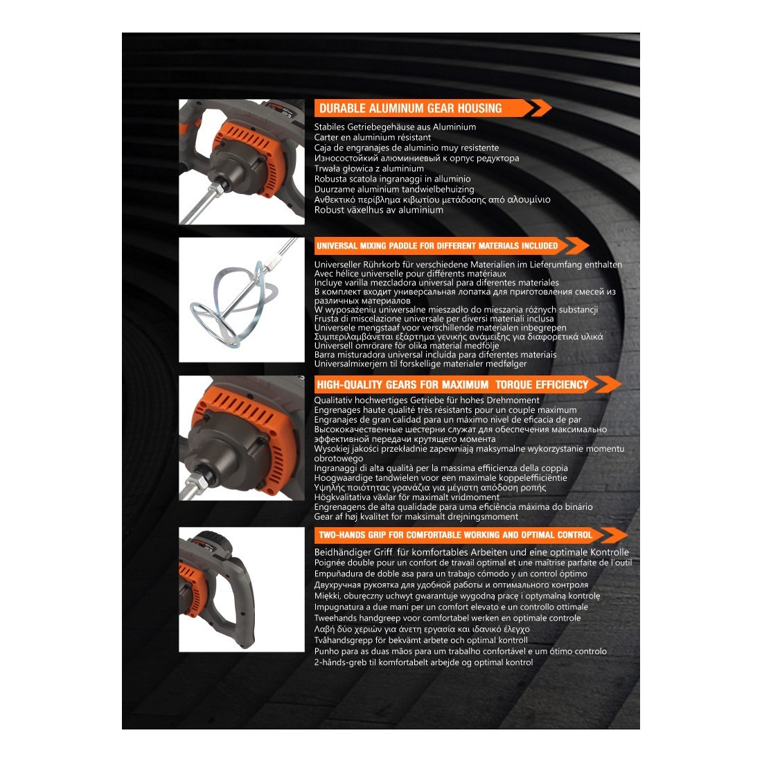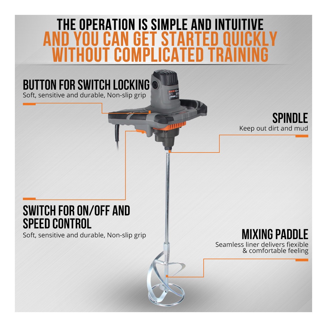 Built for durability and reliability, the KRW 1400 V features sturdy construction to handle demanding, continuous use in industrial and professional settings. The ergonomic handle design ensures comfortable operation, even during extended periods, while the variable speed control allows for adjustments to suit different materials and mixing requirements.