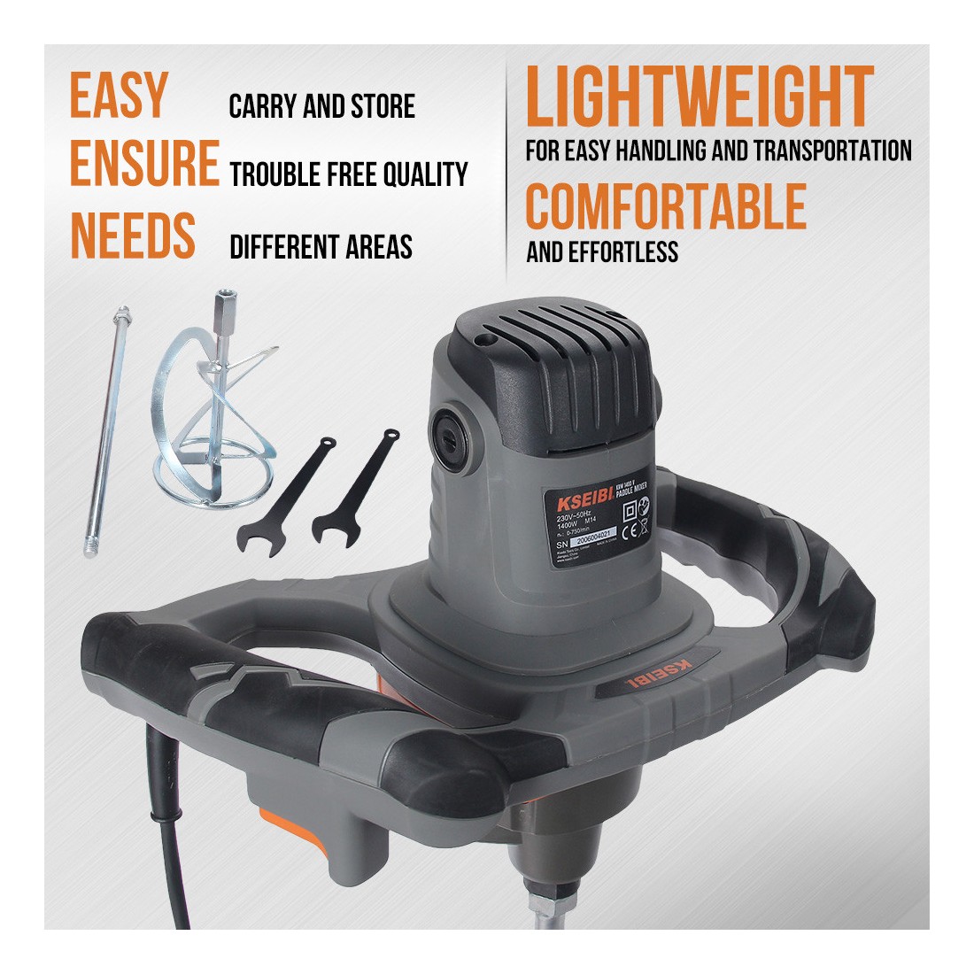 The KSEIBI KRW 1400 V Paint Mixer is engineered to simplify and enhance the process of mixing paints, coatings, and other viscous materials. Its powerful motor and precise design ensure consistent, lump-free mixtures, saving time and effort while delivering optimal results. Whether you’re working with thick latex paints, cement-based compounds, or adhesives, this tool provides the torque and control needed for smooth, uniform blending.