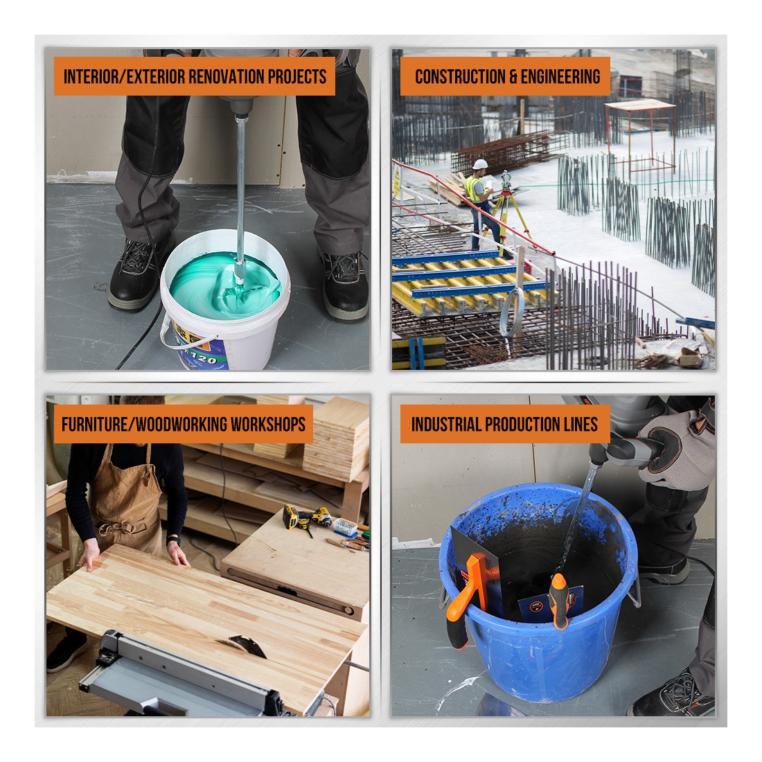 - Compatible with various types of paints, coatings, and construction materials.