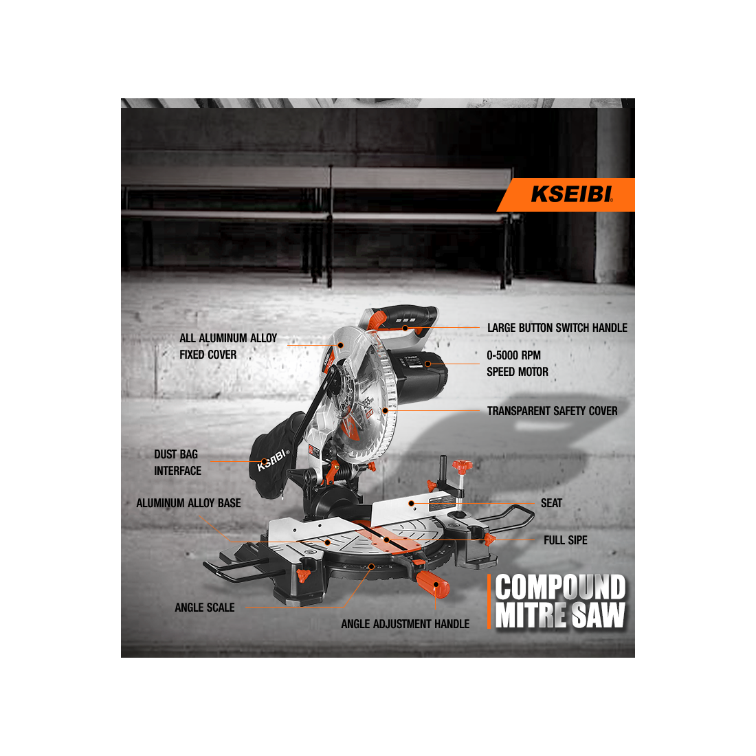 The KSEIBI KCM 18-255 Mitre Saw delivers precise and efficient cutting performance, making it an essential tool for woodworking and construction professionals. Powered by a robust 1800W motor, this mitre saw operates at a no-load speed of 5000 r.p.m., providing the power and speed needed to handle tough materials with ease.
