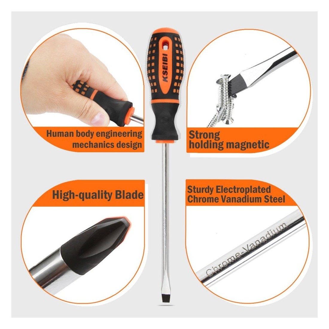 The KSEIBI Slotted & Philips Screwdriver Set 865 (5-Pc.) combines precision, durability, and versatility to handle a wide range of fastening tasks with ease. Featuring five screwdrivers crafted from robust chrome vanadium steel, this set is built to withstand repeated use in demanding environments while maintaining its reliability. The sleek black finish not only enhances durability but also provides a professional appearance.