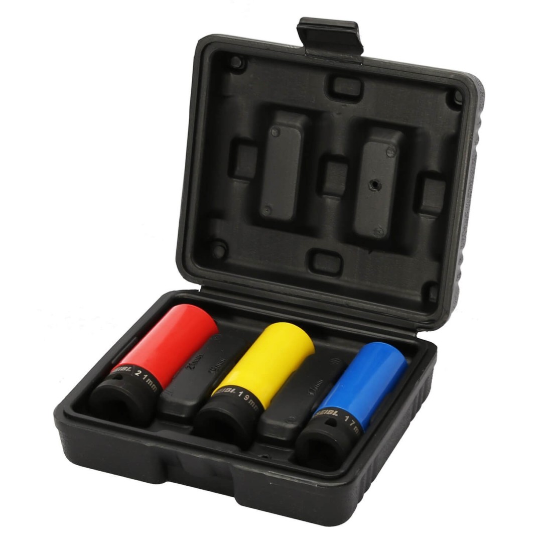 • Includes three essential socket sizes to cover a wide range of lug nut types.