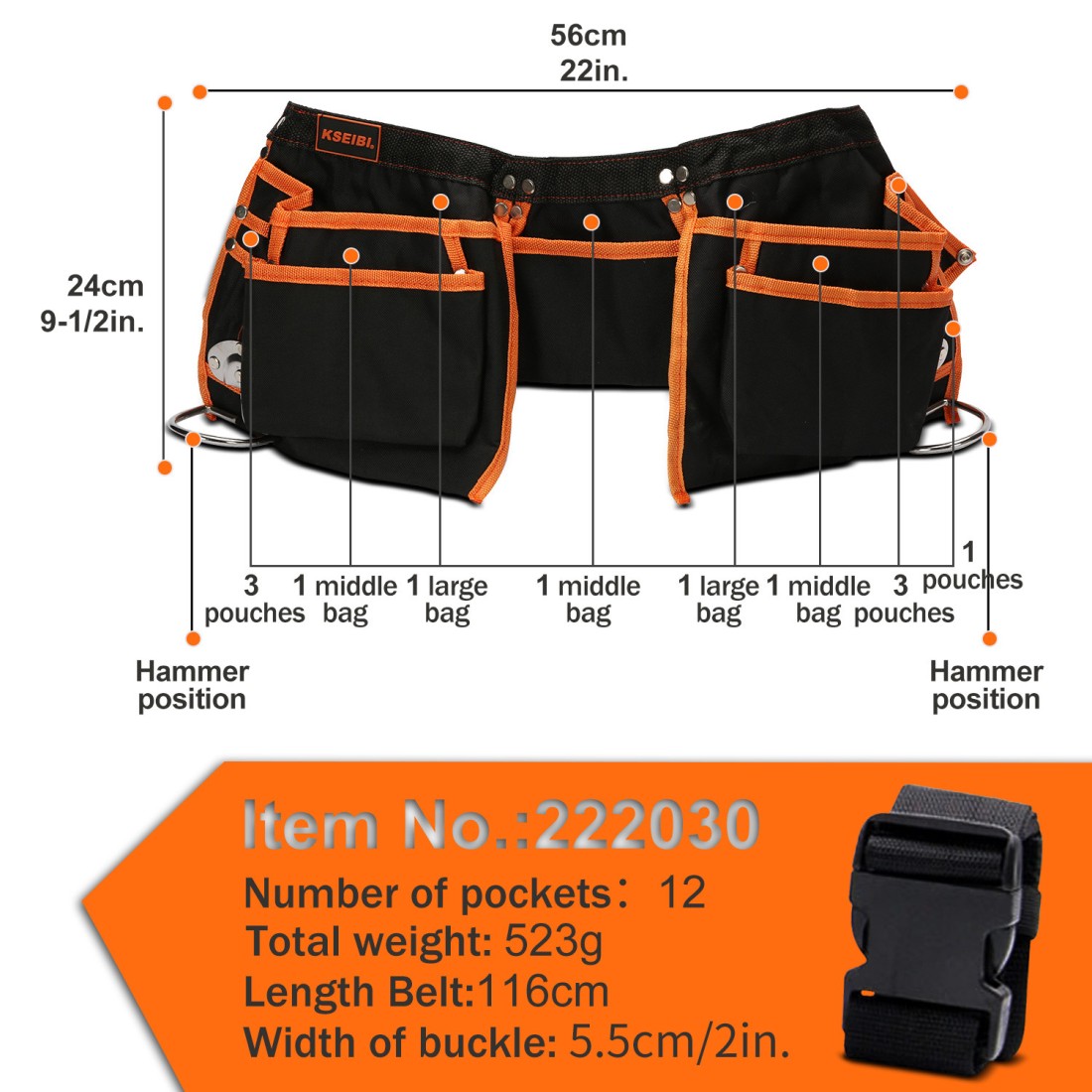 Constructed from durable oxford fabric, this tool belt provides the strength and longevity required for demanding work environments. Its sturdy material resists wear and tear, ensuring it can handle the daily rigors of professional use while maintaining its structure over time.