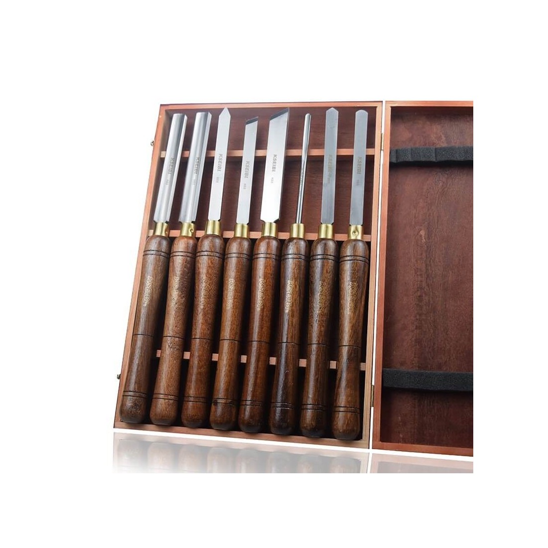 ست ۸ عددی اسکنه خراطی چوب با تیغههای باکیفیت از فولاد HSS برای کارهای حرفهای روی چوب مناسب است