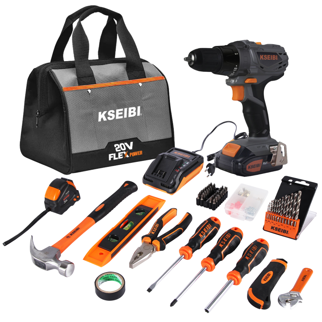 KSEIBI دریل بیسیم ۲۰ ولت با باتری XL به همراه ست ابزار دستی