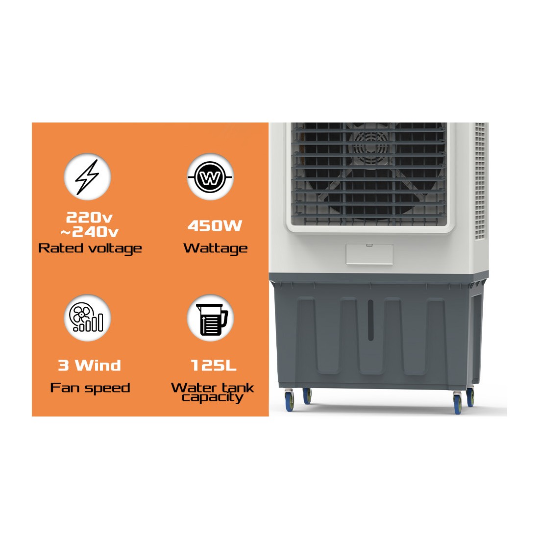 کولر هوای KAC 45-125 L، ۱۲۵ لیتر، ۴۵۰ وات — خودکار و مطمئن | قدرتی در هر فضای کاری