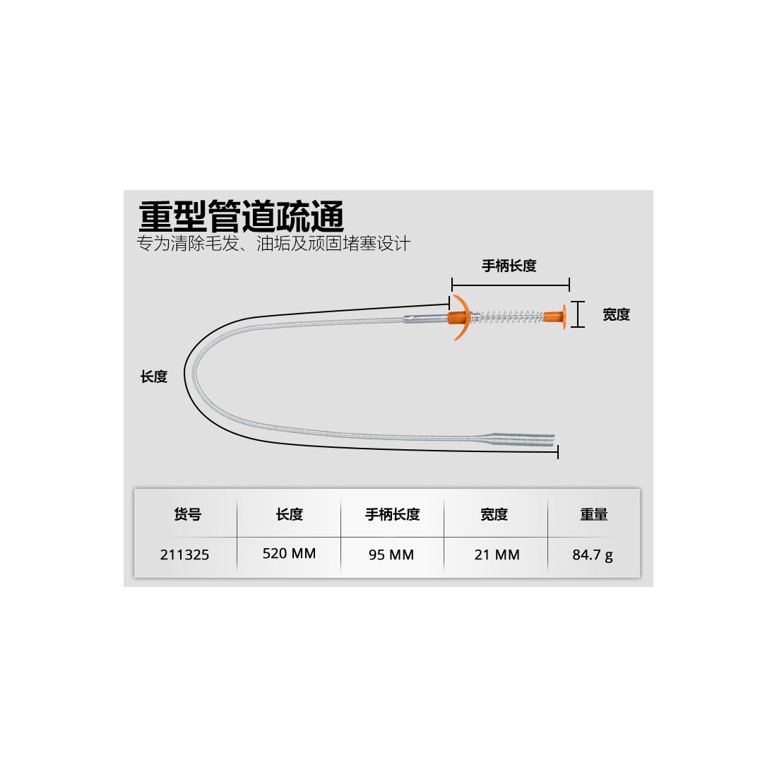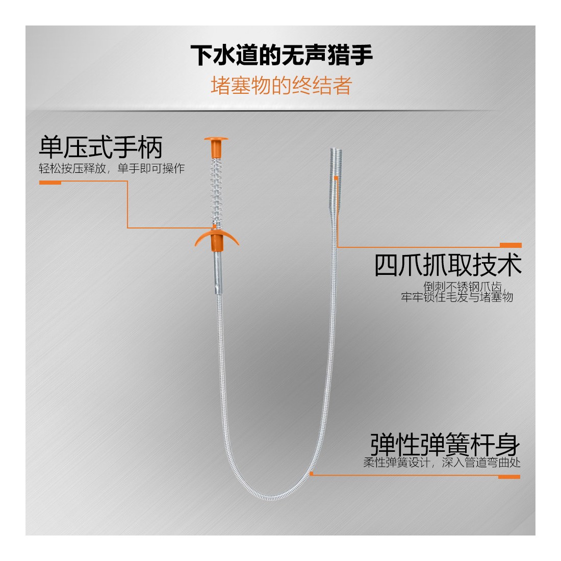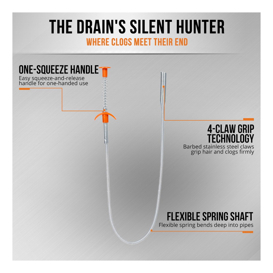 چنگک فنری انعطافپذیر با طول 24 اینچ برای دسترسی به نقاط سخت و باریک طراحی شده است.