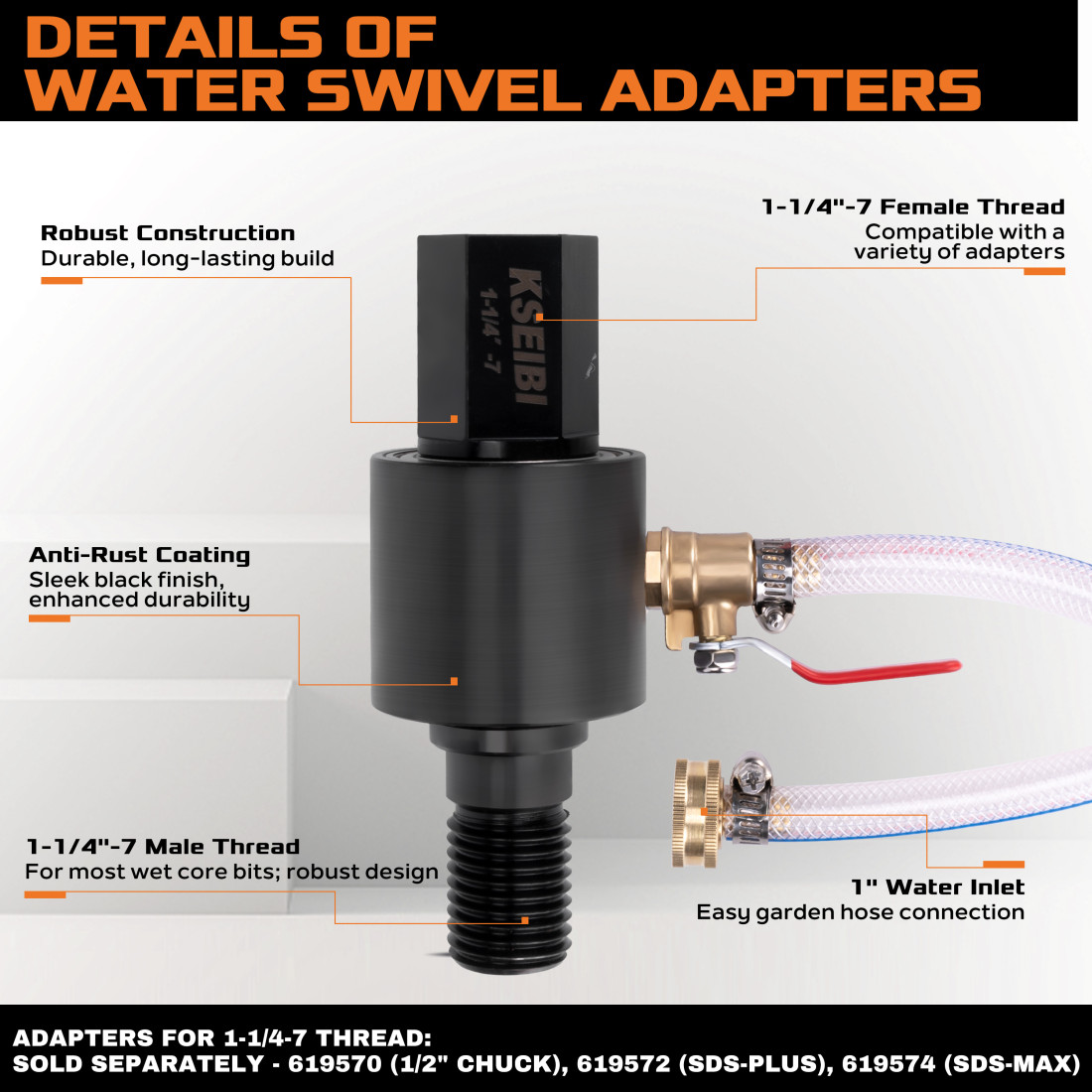 KSEIBI آداپتور چرخشی آب ابزار حفاری هستهای الماسی تر ۱-۱/۴-۷