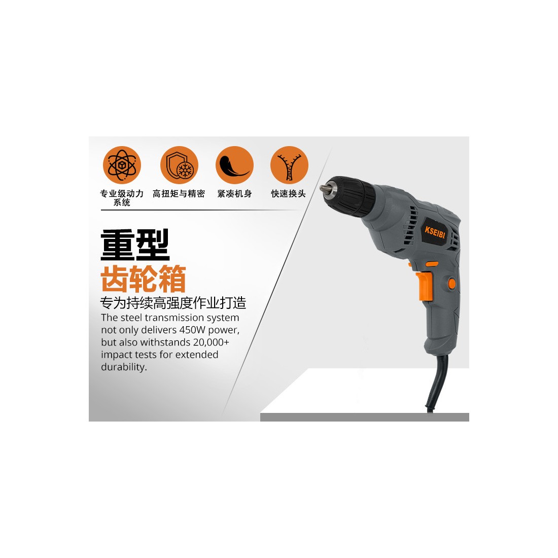 KSEIBI دریل برقی، 10 میلیمتر، بدون کلید، 450 وات