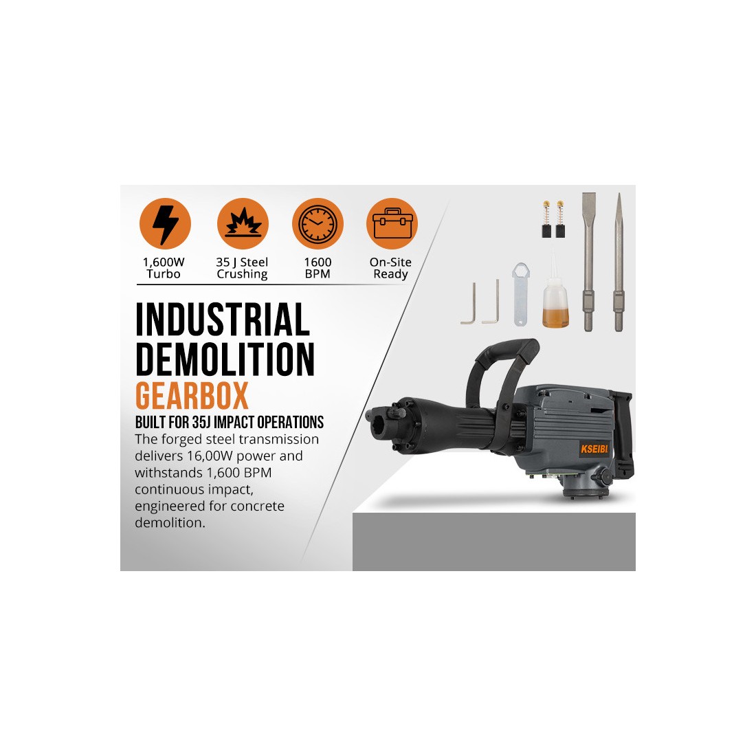 - موتور قدرتمند با توان 1600 وات برای تخریب سریع و مؤثر.