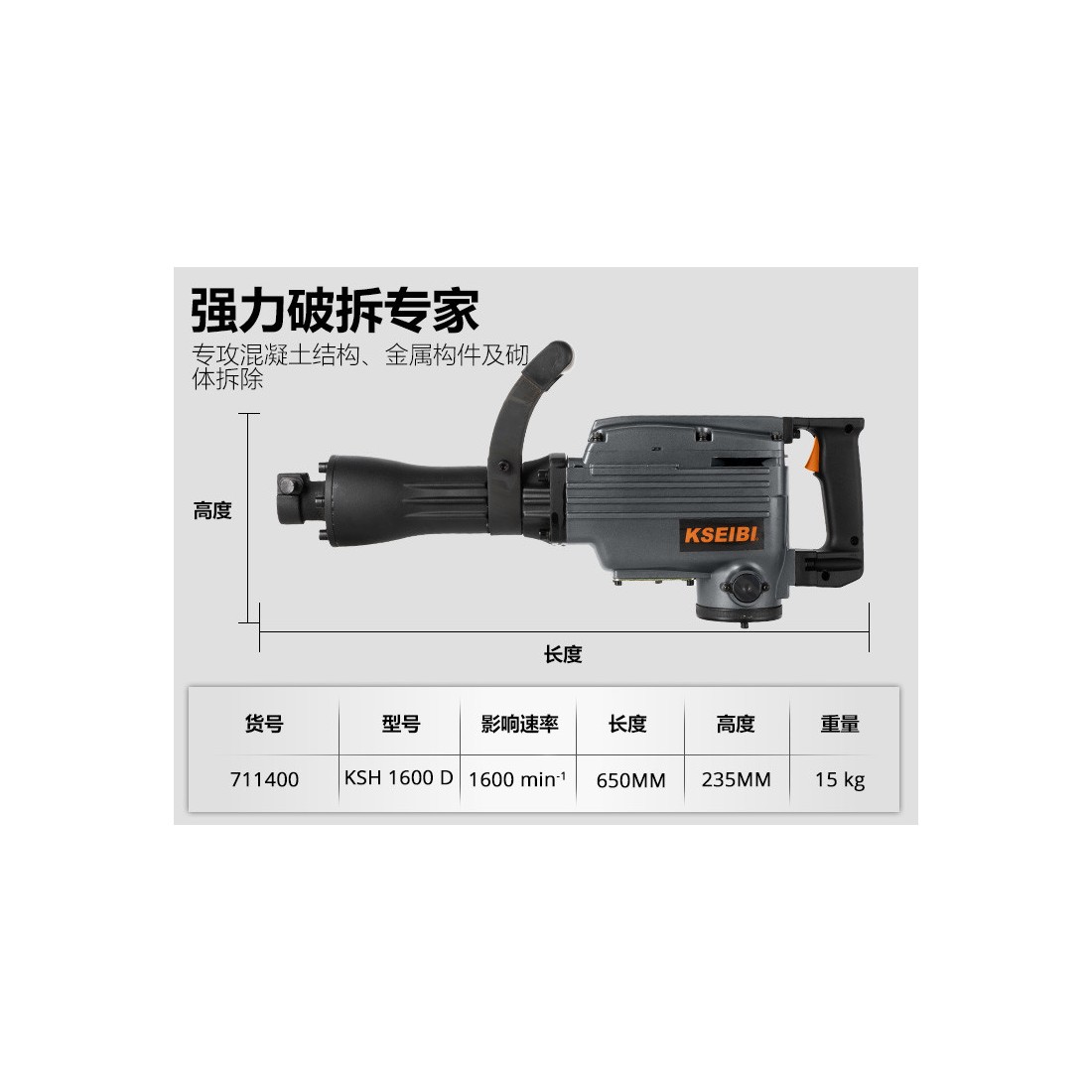 - مناسب برای تخریب بتن، سنگ و سطوح سخت.