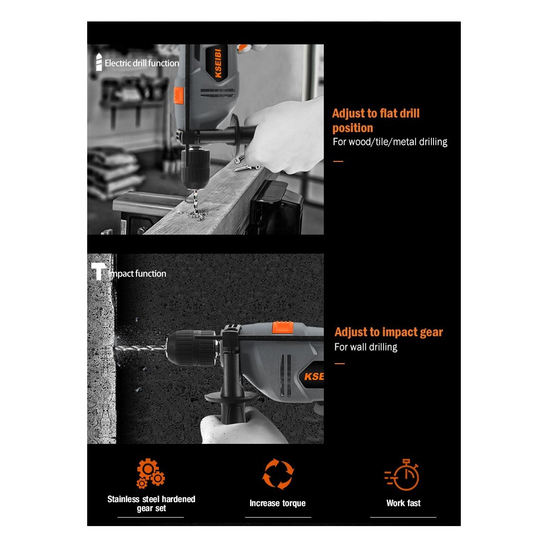 - قابلیت عملکرد تأثیری برای سوراخکاری در مواد سخت مانند بتن و آجر.