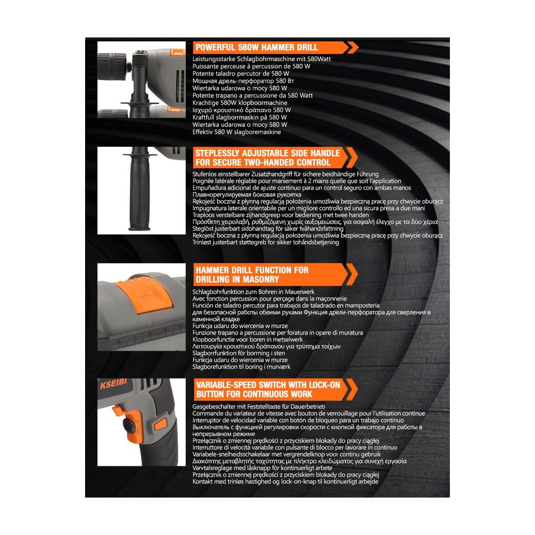 - دستگاه سوراخکاری تأثیری KSB 580 D، ۱۳ میلیمتر بدون کلید، ۵۸۰ وات