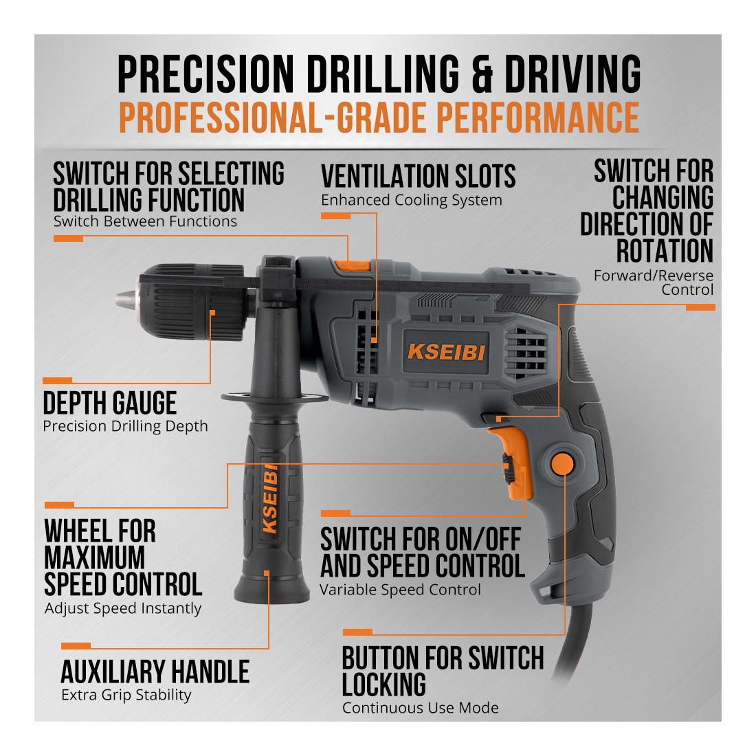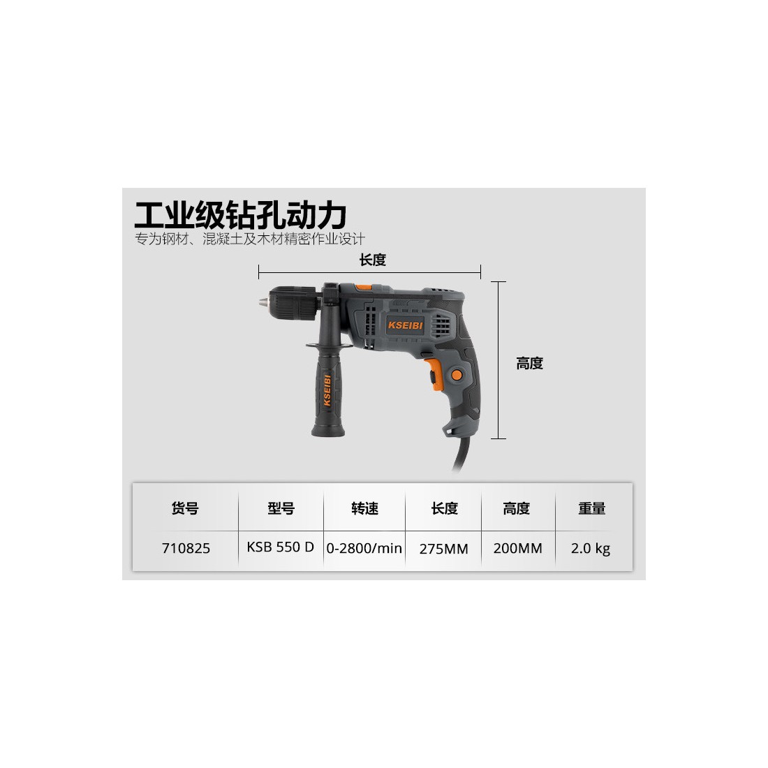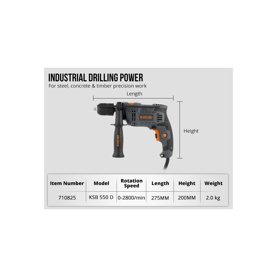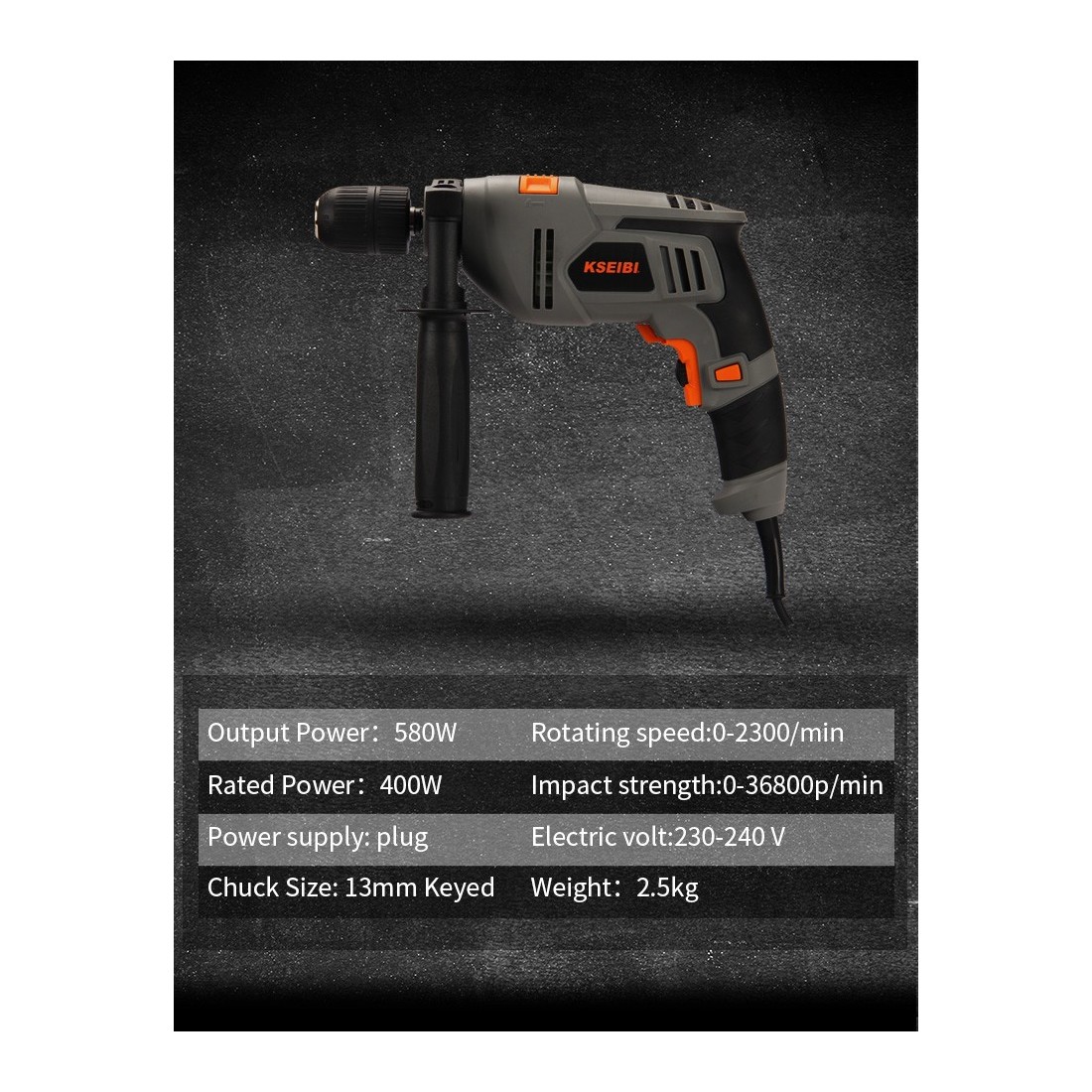 KSEIBI دستگاه سوراخکاری تأثیری KSB 580 D، ۱۳ میلیمتر بدون کلید، ۵۸۰ وات