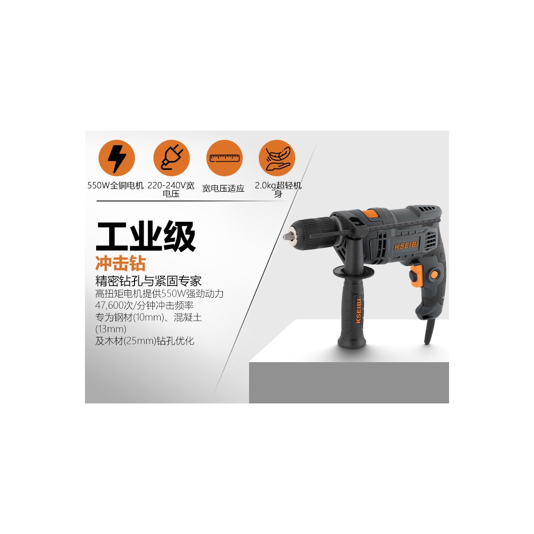 دستگاه سوراخکاری تأثیری KSB 580 D، ۱۳ میلیمتر بدون کلید، ۵۸۰ وات — ایمنی و استحکام در هر سوراخ | اعتماد کارایی بینظیر