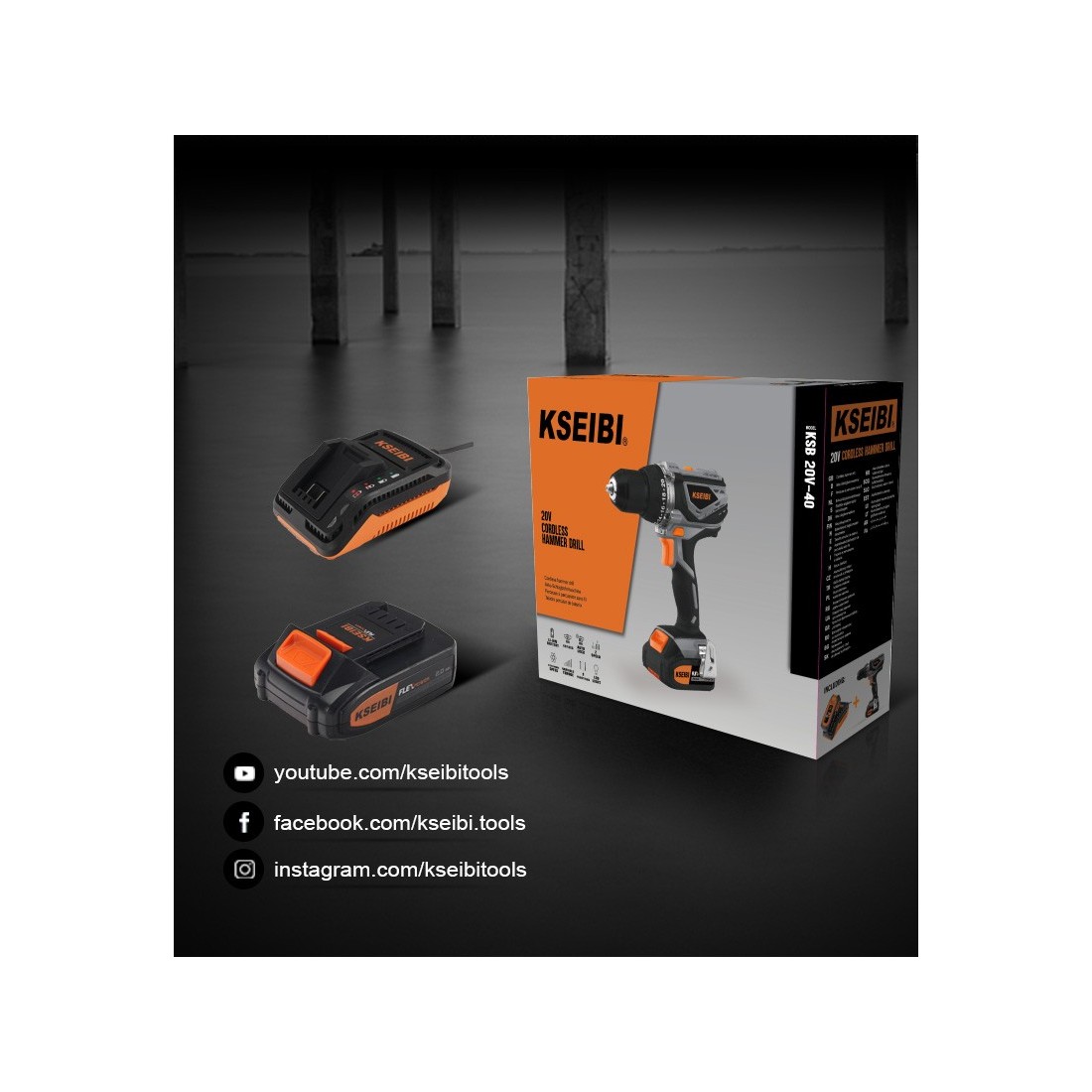 KSEIBI KSR 20V-40, аккумуляторная дрель, 20 В, 13 мм, 2 аккумулятора
