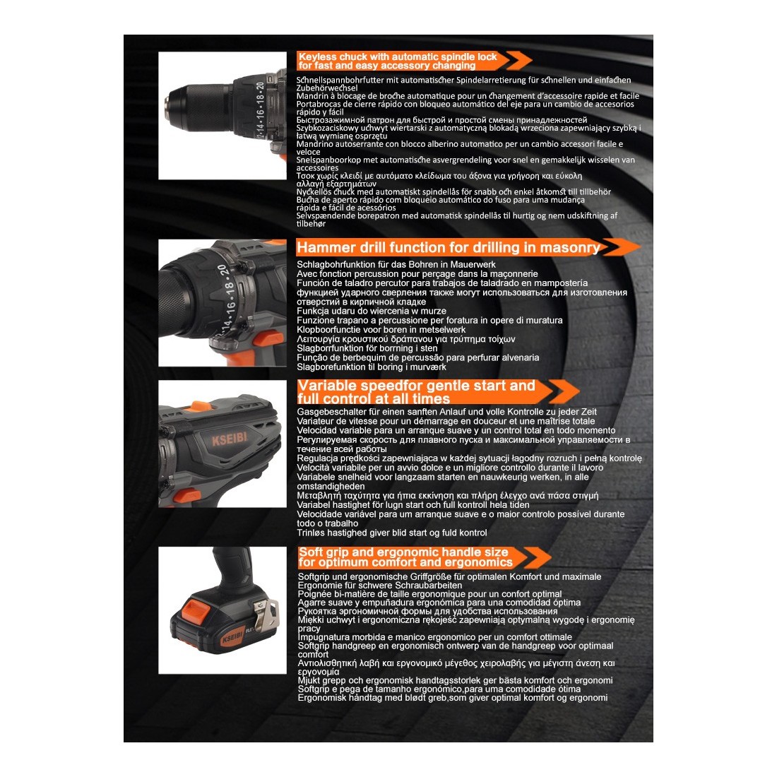 Эргономичный дизайн и сбалансированный вес дрели обеспечивают комфорт даже при длительном использовании, а прочные материалы конструкции гарантируют долговечность, соответствуя репутации KSEIBI как бренда, которому доверяют профессионалы.