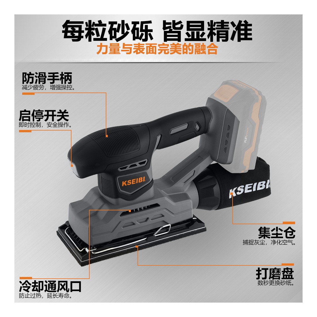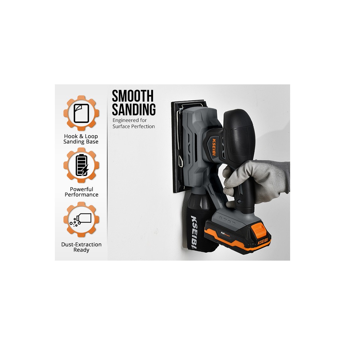 KSEIBI KSS 20V-230 — инструмент, который сочетает в себе мобильность и производительность, предоставляя пользователю полный контроль над процессом шлифовки.
