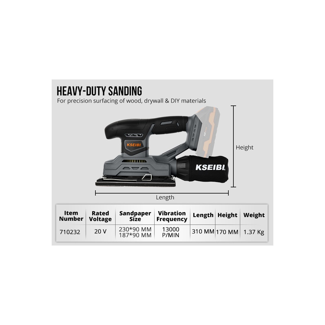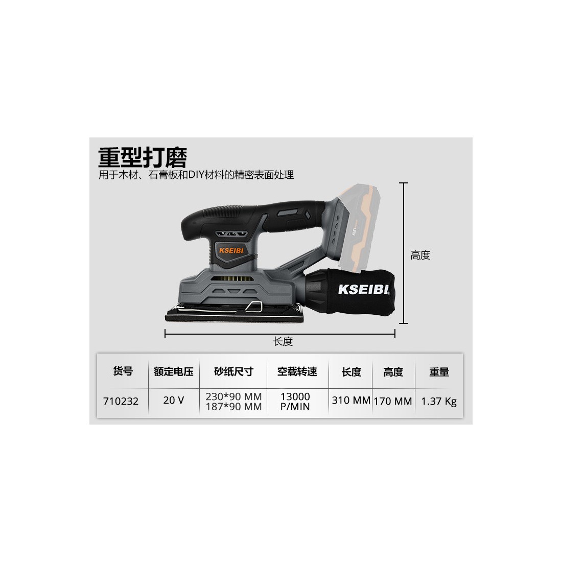KSEIBI KSS 20V-230, аккумуляторная плоскошлифовальная машина, без аккумулятора