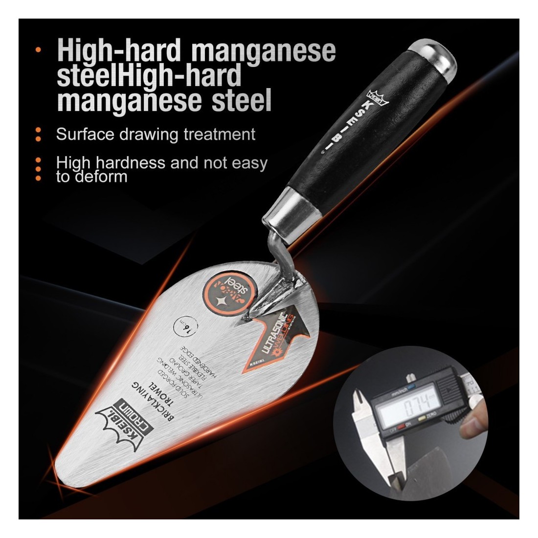 • Оптимальная форма лезвия для точной и эффективной кладки кирпича.
