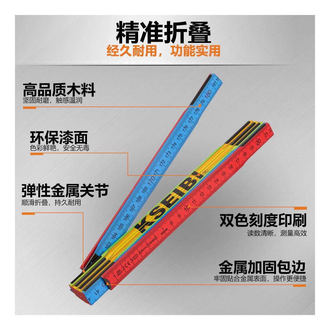 Складная деревянная линейка KSEIBI сочетает в себе классические материалы и современную функциональность, предлагая удобное решение для точного измерения и разметки. Изготовленная из прочного дерева с добавлением стального корпуса и черной пластиковой ручки, эта линейка создана для долговечной эксплуатации в различных условиях.