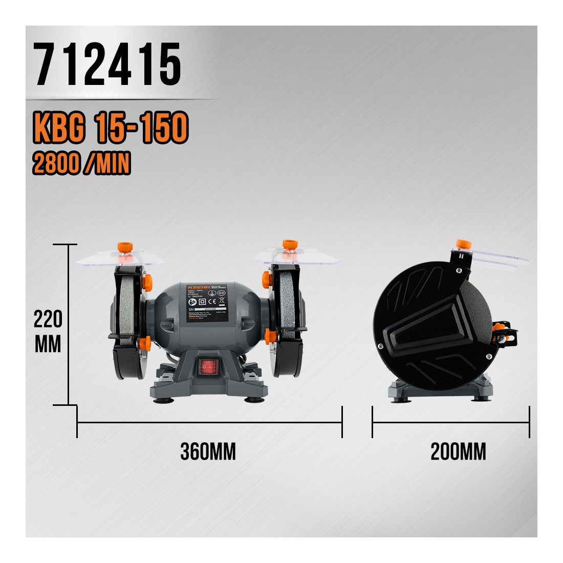 KSEIBI KBG 15-150, настольный шлифовальный станок, 150 мм, 150 Вт