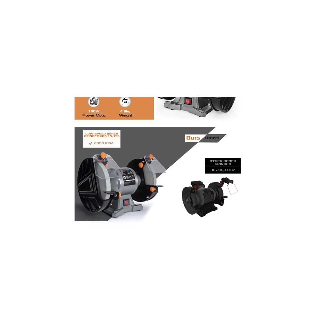 KBG 15-150, настольный шлифовальный станок, 150 мм, 150 Вт — Надежность и мощь | Инструмент для профессиональной обработки