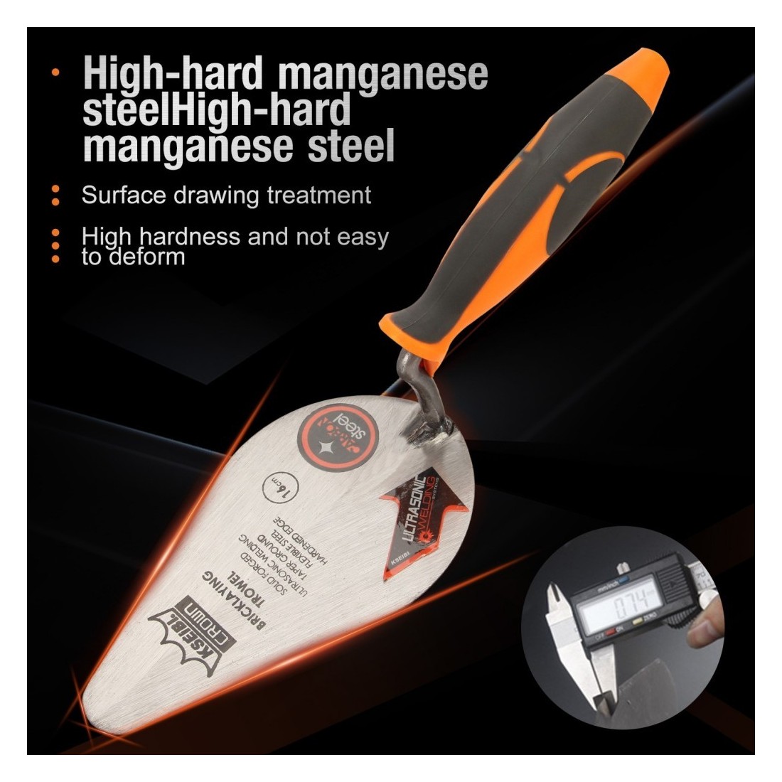 高品质工具钢材质,确保砌砖抹刀的坚固性和可靠性。