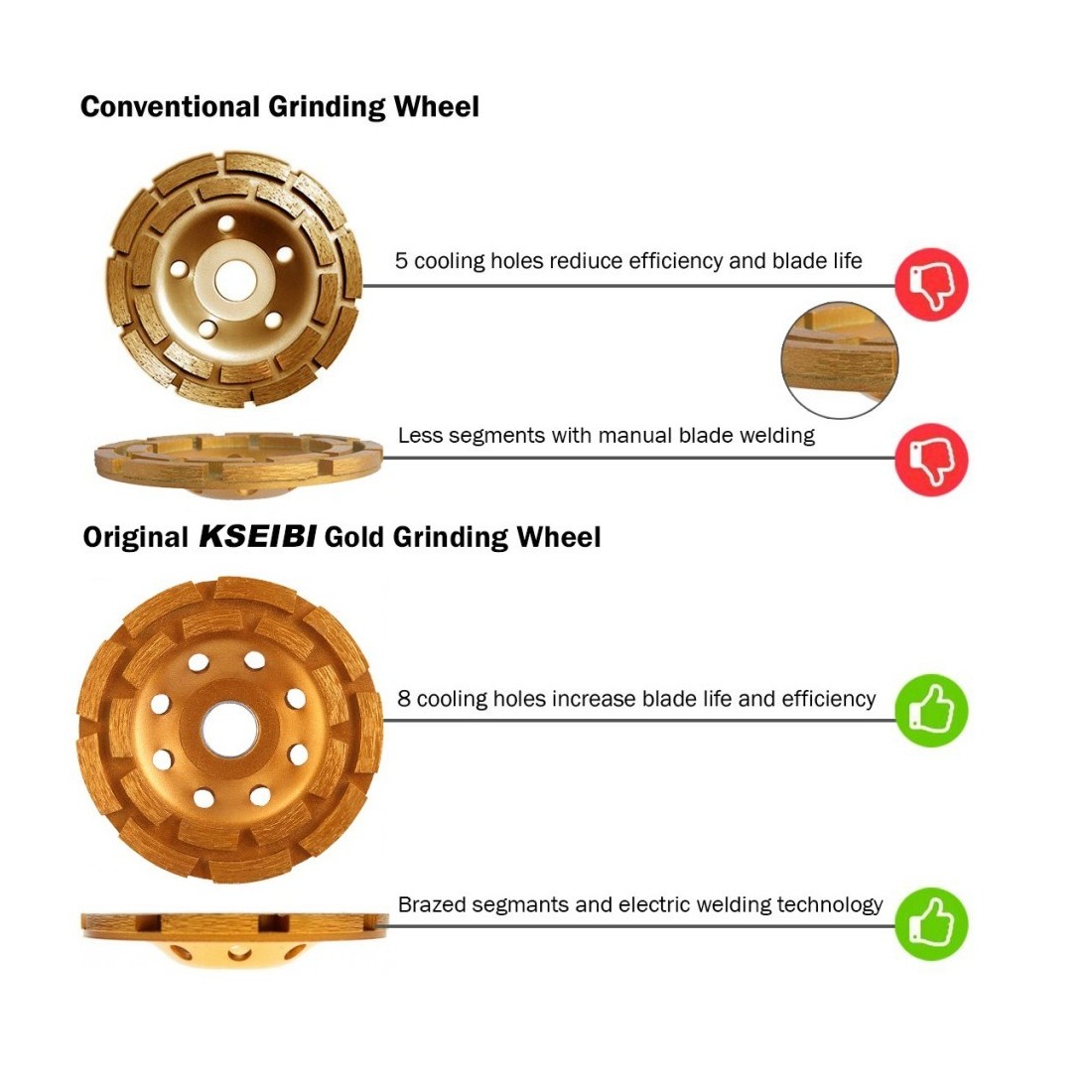 KSEIBI 金刚石磨轮(双排)专为高效研磨混凝土和石材表面而设计,提供卓越的耐用性和精准性能。其双排设计增强了材质去除效率,使研磨过程更加快速,同时减少操作中的震动感,提升使用体验。