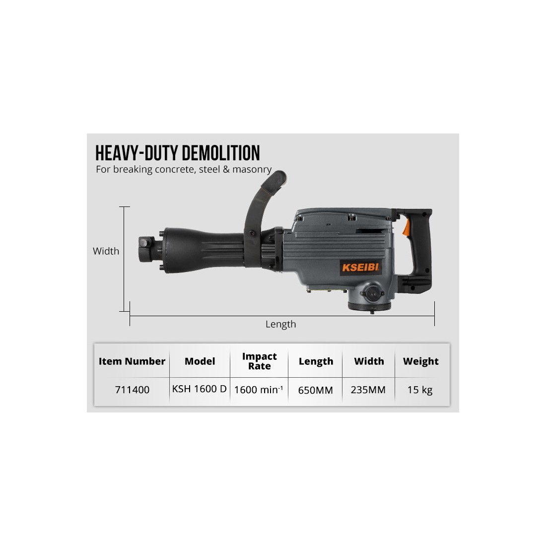 - 精确击打功能,适合多种施工场景,包括混凝土和石材破碎。