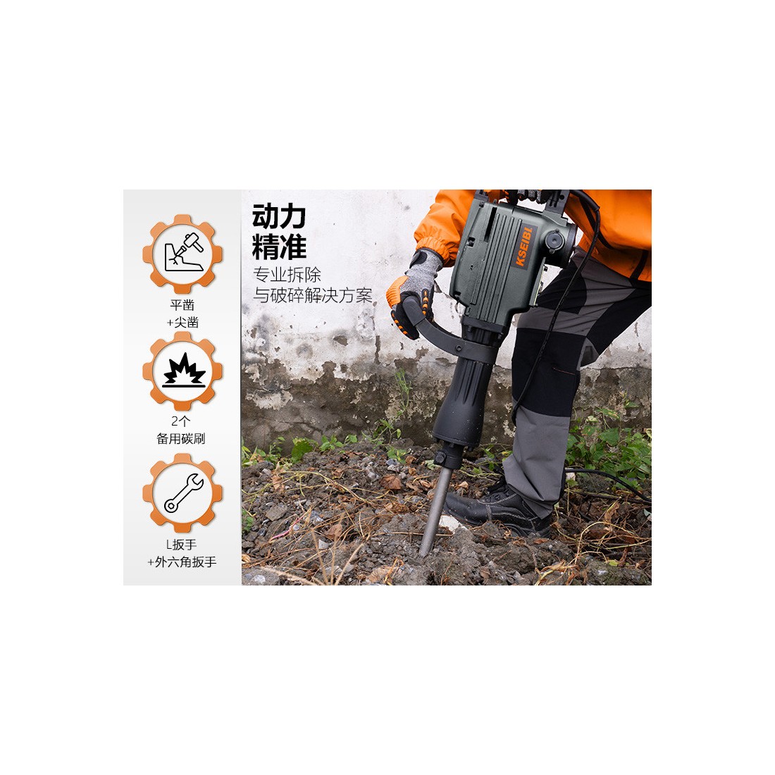无论是建筑公司、维修团队,还是基础设施建设项目,这款爆破锤都能胜任复杂的作业需求。从混凝土剔凿到地基破碎,KSEIBI KSH 1600 D为专业施工人员提供了一种可靠且高效的解决方案。