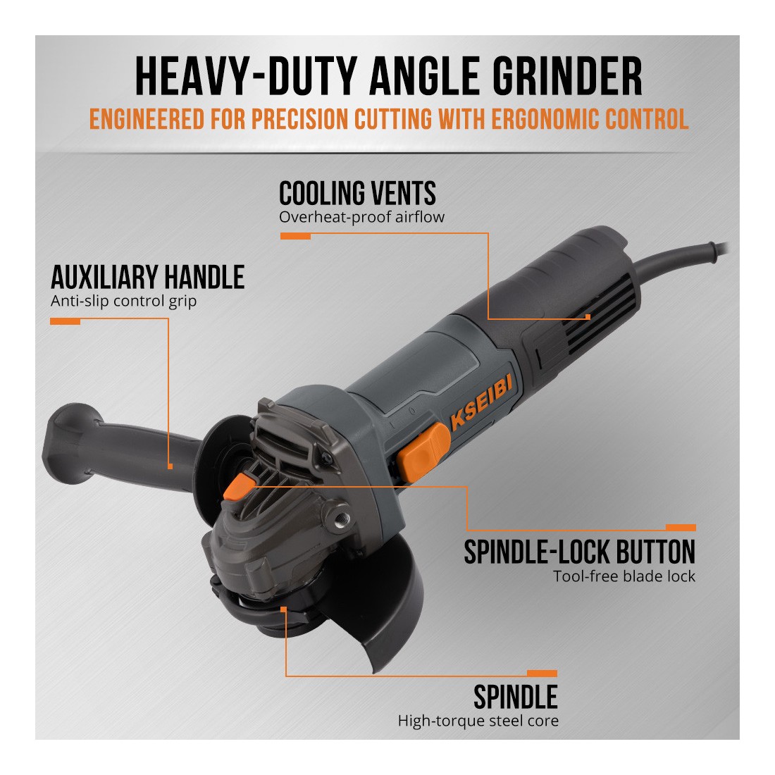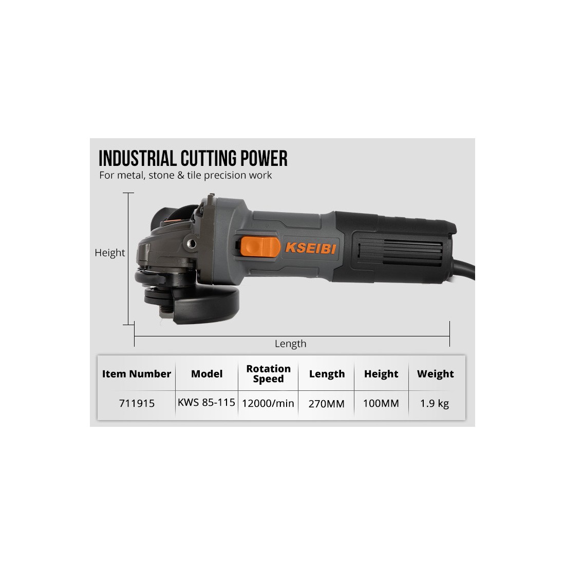 KSEIBI KWS 85-115角磨机专为切割和打磨任务设计,结合了强劲性能与耐用性,适用于多种工业和专业场景。配备850瓦功率及115毫米盘片直径,它能够轻松处理金属、石材及其他坚硬材料的精细切割和表面打磨工作。