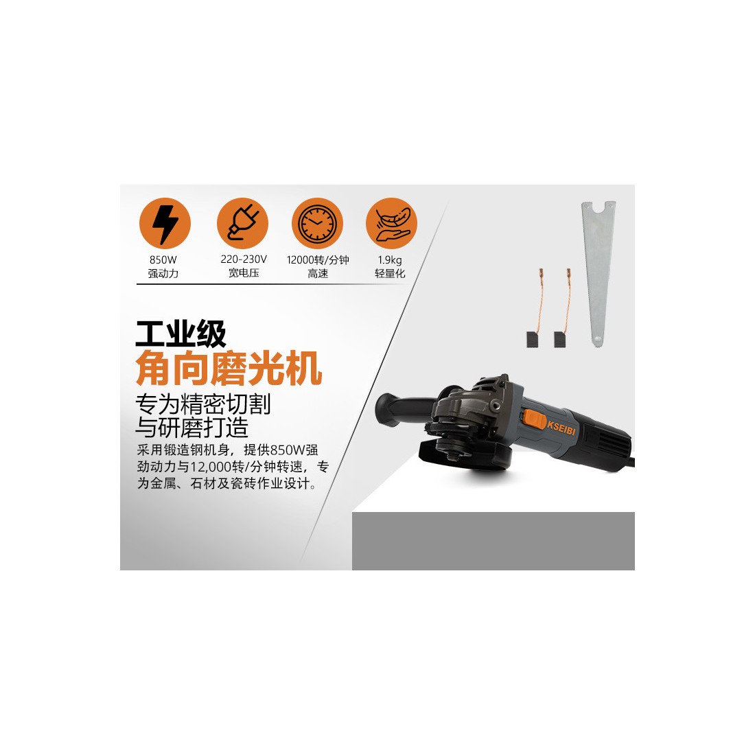 配备850瓦强劲电机,提供高效切割和打磨性能。